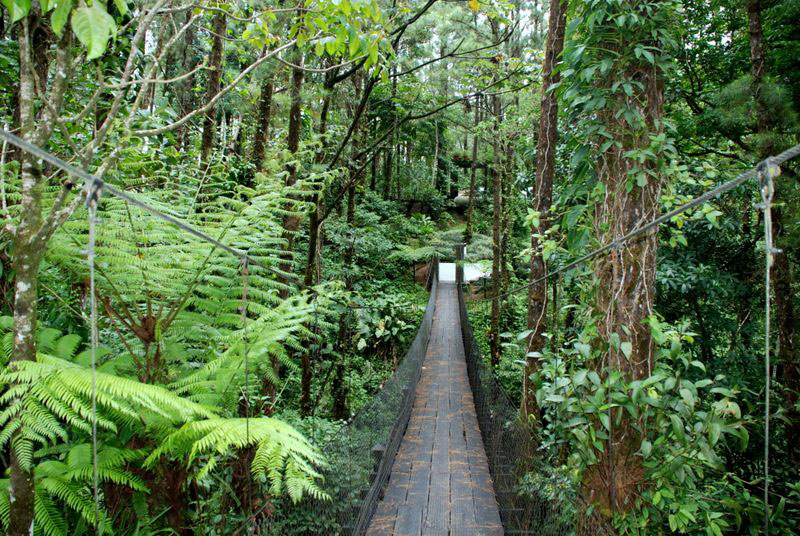 The lodge is located just 1.8 kilometers from the active crater of Arenal Volcano, and is separated from it by a deep river valley. The location was specifically chosen in the 1970's by scientists from the Smithsonian Institute, who needed a close but safe vantage point from which to study the volcano. Arenal Observatory Lodge sits on 870 acres of land adjacent to the Arenal Volcano National Park. The site contains 270 acres of primary rain forest with well-marked trails, 400 acres of reforestation projects (parts with non-native pine & eucalyptus), and 200 acres of working farm lands.