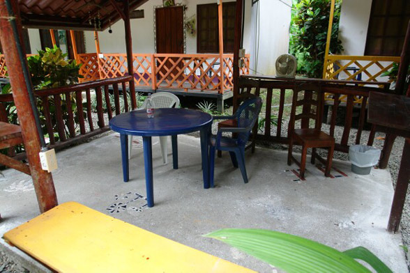 Four cabins equipped with a double bed, a bunk bed, cable TV, fan and a small fridge, a private bathroom with closet. Each room has a porch furnished for private sitting area: table and four chairs. No cooking allowed.